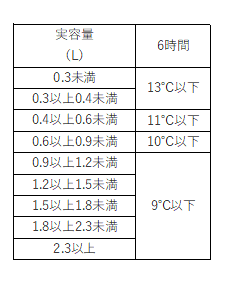 ステンレス鋼製まほうびんの保温効力(直飲式の保冷専用を除く)