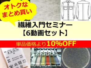 受付中 オンデマンド 入門 繊維品基礎知識ものづくり品質表示機能性加工 繊維入門セミナー 2025/4/1 弊機構では各社からのご要望にこたえ、毎年新入社員の研修の一環としてお役立て頂けるよう、繊維業務を遂行する上で必要な基本事項を初心者向けに解説する「繊維入門セミナー」を実施し好評を頂いております。今年はこれまでのテキスタイル、アパレルの基礎知識に加え、機能性についての講義も設けさせて頂きました。①「衣料用繊維と糸及び織物とニットに関する基礎知識」繊維から糸、織物、ニットが出来るまでの基礎知識について解説します。②「染色加工及び仕上げ加工に関する基礎知識」染色加工及び仕上げ加工の基礎知識について解説します。③「縫製品に関する基礎知識」生地から製品になるまでの縫製工程の基礎知識について解説します。④「品質表示に関する基礎知識」「繊維の組成」「取扱い絵表示」「サイズ表示」及び「原産国表示」に関する基礎知識について解説します。⑤「品質評価試験方法及び評価基準に関する基礎知識」染色堅ろう度や物性に関する試験方法及びその評価基準に関する基礎知識について解説します。⑥「機能性試験及び試験方法の基礎知識」代表的な機能性試験の種類と評価方法について解説します。6講座の中から受講したい講座をご自由に選択することが可能です。是非ともご参加ください。 オンデマンドセミナーのご購入はこちら 配信期間2025年4月1日~2026年3月31日までご購入後、7日間ご自由に視聴いただけます。6動画セットをご購入の場合は14日間ご視聴いただけます。開催場所オンデマンドセミナーですレベル入門編料金単品:6,600円6動画セット:35,640円視聴可能期間視聴可能期間は視聴可能となってから7日間です。視聴開始となった日が1日目になります。クレジットカード決済の場合:購入日が視聴開始1日目となります銀行振込の場合:入金確認メールが届いた日が1日目となります 動画の視聴方法